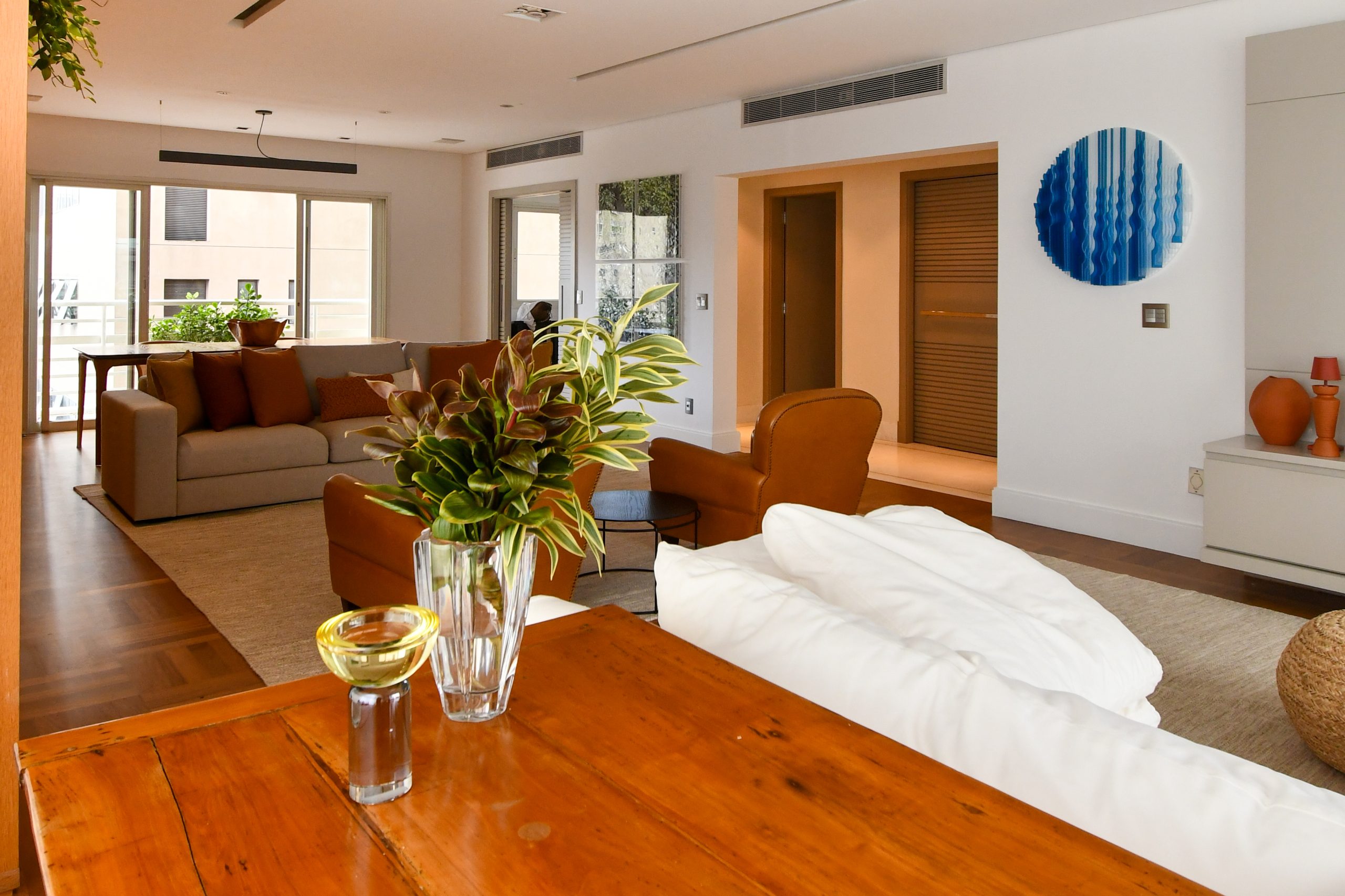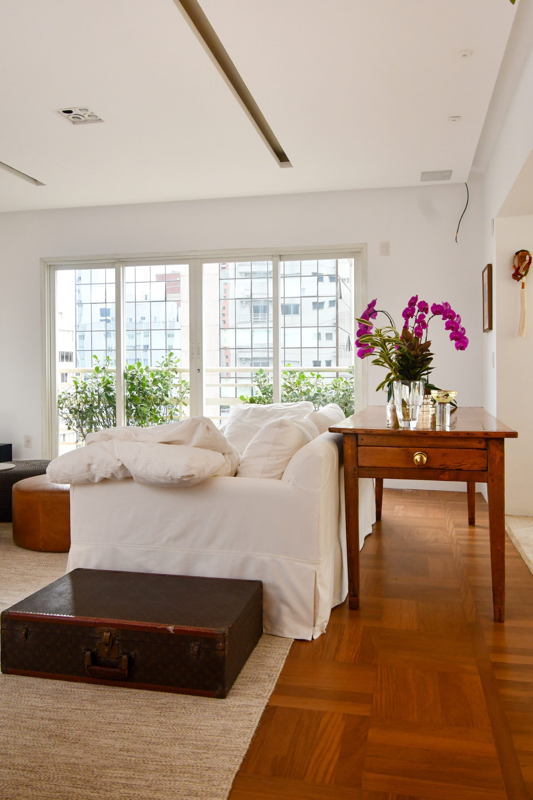 O apartamento traduz o encontro entre culturas e revela uma atmosfera de afeto, verde e luz — onde cada objeto guarda uma lembrança e o design se faz gesto de acolhimento.
