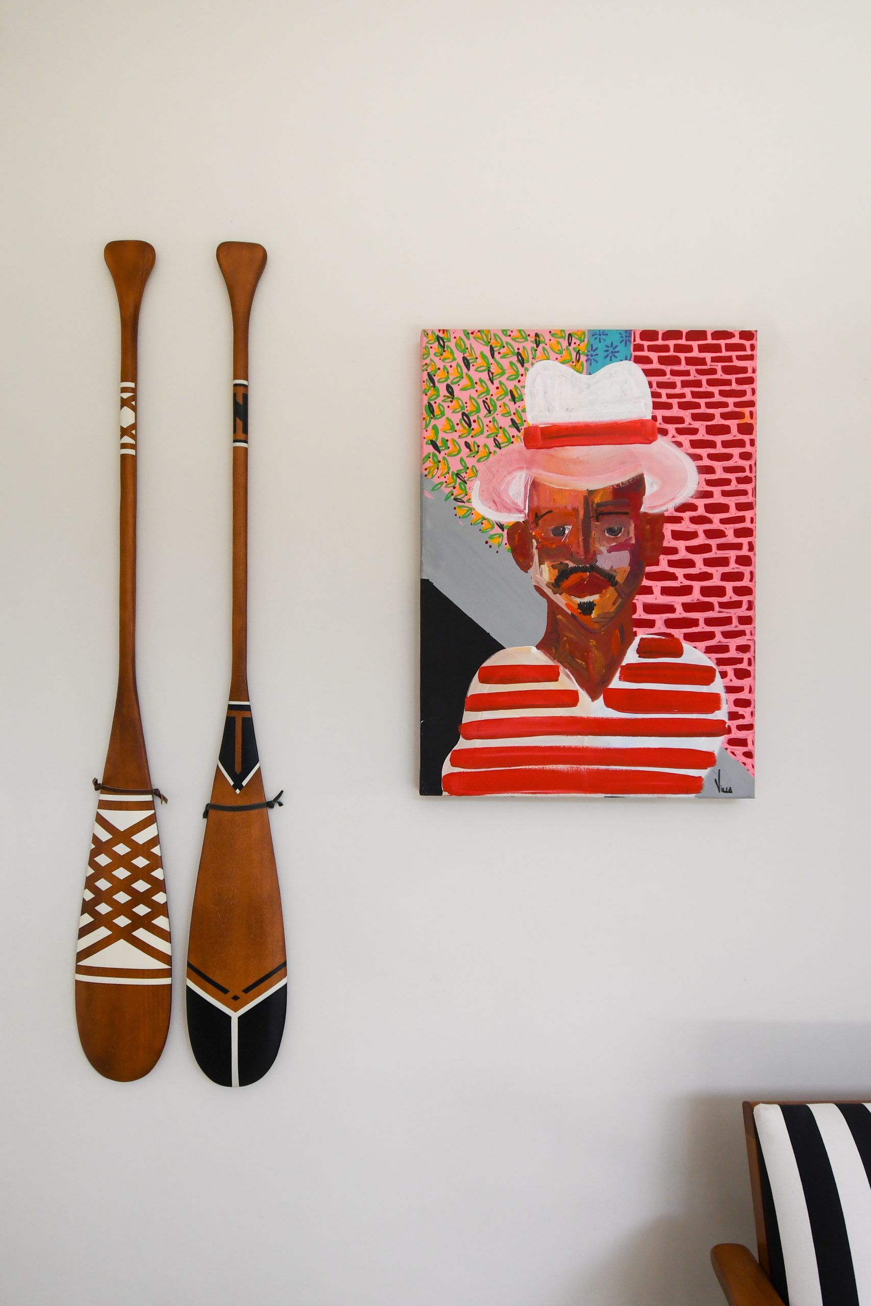A conexão entre o projeto e o os hobbies pessoais do morador aparecem nos detalhes: a pesca, uma de suas paixões, inspirou elementos como o barco na parede externa e os remos postos como objetos decorativos.